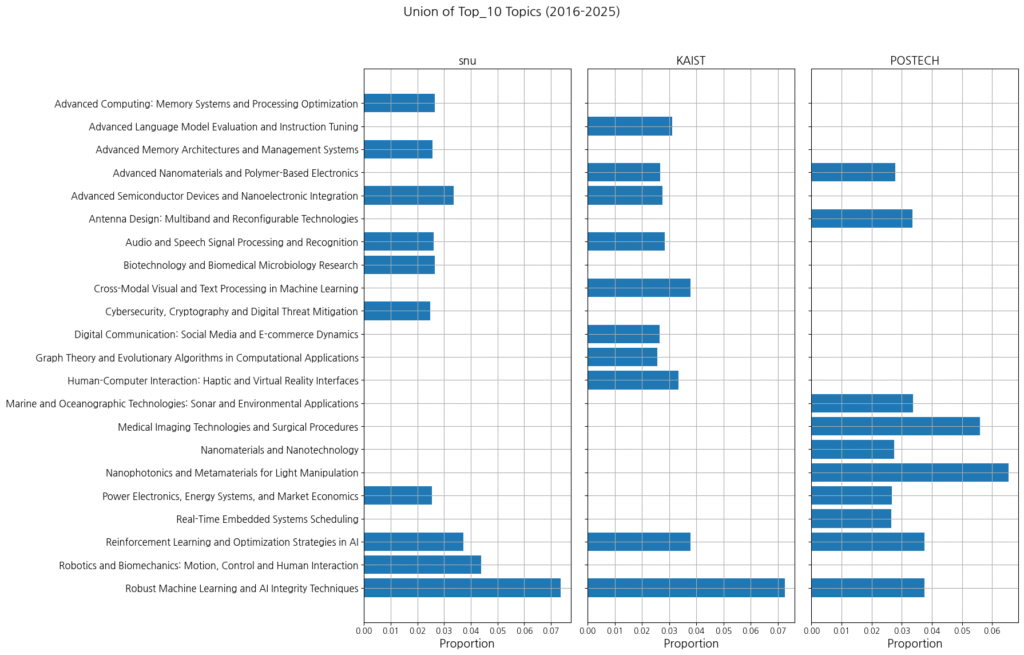 1. 서울대, KAIST, POSTECH의 공통 Top-10 주제