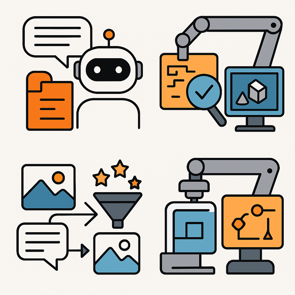 - AI 콘텐츠 및 인프라 품질 관리: 생성 결과물을 기능별 조각으로 분해해 분석하여 LLM의 성능을 평가하는 시스템을 활용하여 AI의 응답 품질과 신뢰성을 확보합니다. 또한, 텍스트 입력만으로 조작 가능한 고품질 3D 가상 장면을 생성하는 기술을 활용해, AR/VR 기반의 교육 시뮬레이션 및 원격 평가 환경을 구축합니다. 이와 함께 텍스트 기반으로 이미지를 생성할 때 시각 언어 모델(VLM)을 이용해 프롬프트를 반복적으로 개선하여 안전하고 적절한 이미지 생성 결과를 보장합니다.